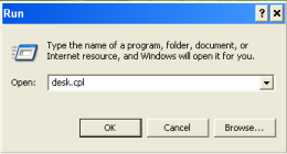 Alternatively, you can type the command desk.cpl at the command prompt or in the Run box to access – Display Properties.
