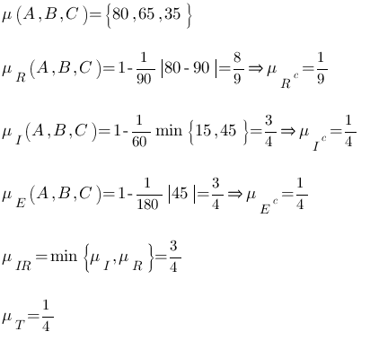 Now we can infer membership values for all those type of triangles through the method of inference because we posses the knowledge about the geometry of their shapes for assigning membership values. Below given are the membership values for the 5 types of triangles defined above.