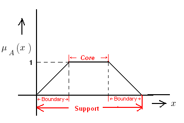 Core, Support and Boundary of a membership function representation