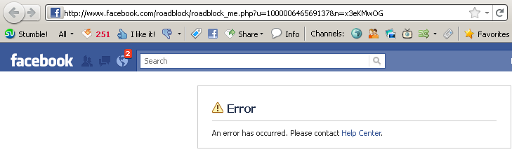 And when clicked on the roadblock link sent to protect my Facebook account information, it returns an error page saying