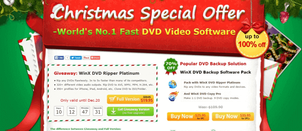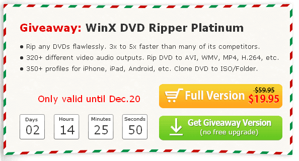 Merry Christmas in advance! Now comes the holiday season for shopping and spending good time with families. During those cold nights, it’s a very enjoyable thing to snuggle up with your beloved ones and watch some wonderful movies. The most hated thing at that time would be the unexpected pause or black screen of the playback of your movie DVDs. The best solution to this is easily rip DVDs with WinX DVD Ripper Platinum, a professional DVD ripper that can always backup any of your DVDs.