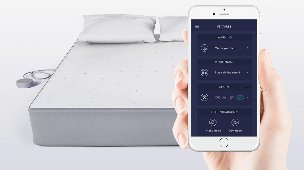 The package consists of an app and the elaborated sensors’ layer which the app controls and the algorithm that makes everything function. All together, they will turn your mattress into your best friend. You can enjoy the dual zone warming feature and the advanced sleep tracking system. By gathering information about your sleeping habits, heart rhythm, breathing rate, etc. (even for two people separately), the Eight Sleep Tracker will identify the reason for your restless sleep. Tossing and turning in bed may be caused by back pains; the app records your movements during the night and makes practical suggestions on what you could improve.