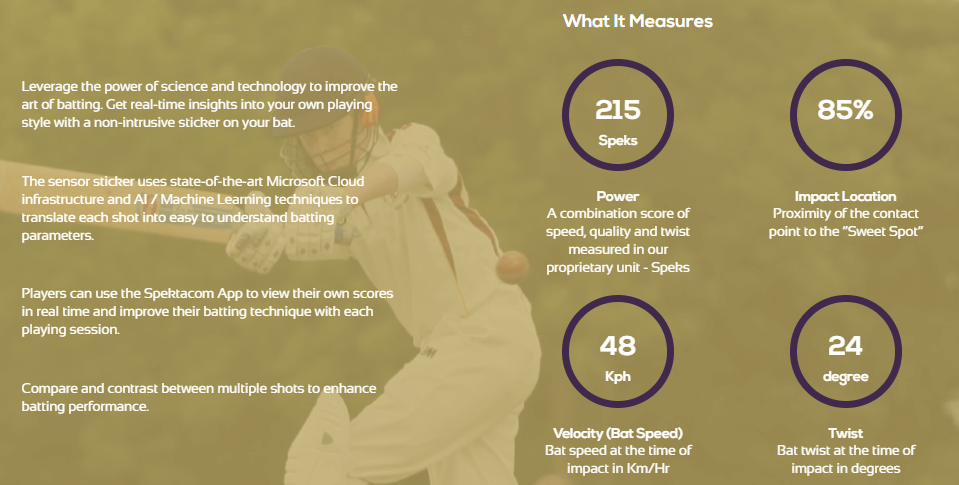 A Power Bat is nothing but a bat backed up by a sensor card that weighs less than 5 grams. It can collect a few parametric data. This data is then further sent for analysis to determine confident predictions. Developed by Spektacom, a tech company led by the legend Anil Kumble, the Power Bat is technologically powered with Microsoft Azure that transmits the real-time data securely from the sensor to the analyzing device. The processing, data management, and other generative models are then developed with Microsoft Cognitive AI services powered by the Azure cloud.
