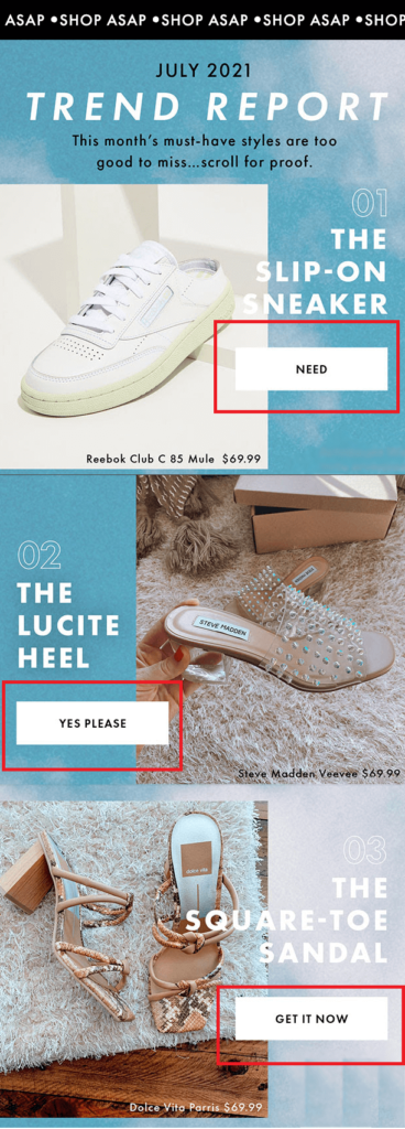 Stop using ordinary calls to actions like “Shop now” and “Buy today”. Get your creative juices flowing and find the words that better resonate with your target audience. A clear CTA is as important for the German market as it is internationally according to consumer market insight for Germany. Check the example below to understand how you can encourage customers to take action.
