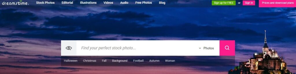 Dreamstime is by far one of the cheapest solutions in paid stock photography. It contains millions of high-quality visuals that are available on subscription and on-demand plans. In fact, some of the pictures are available for as low as $0.20/image.